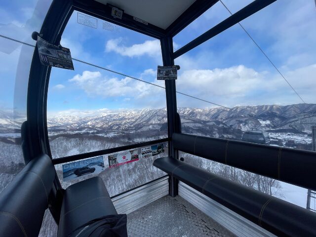 空いているタイミングを狙って、ゴンドラを独り占めできました。基本的にスキーやスノボする人は滑って降りていくので比較的空いています。
